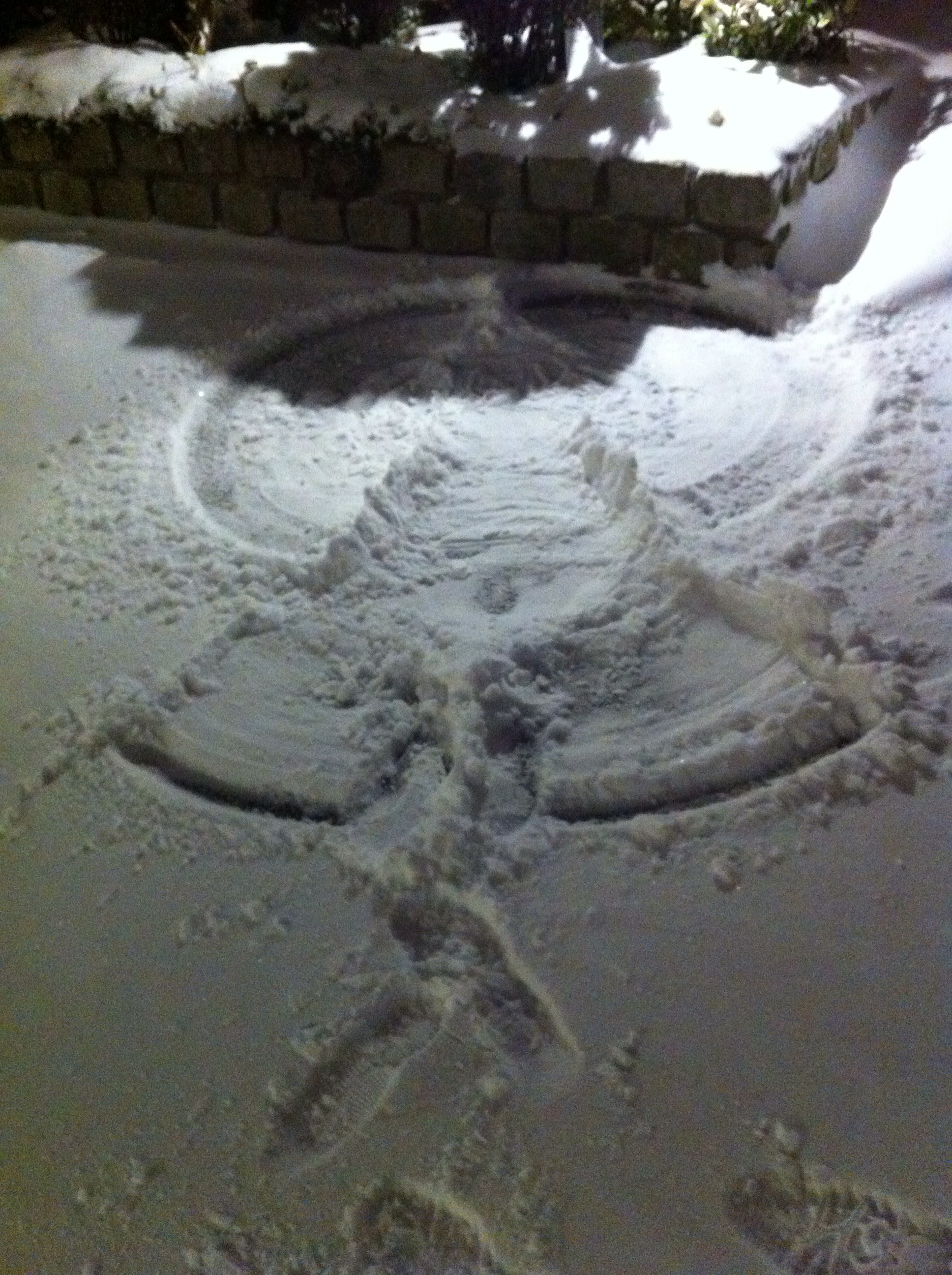 Det snöar idag också. Utanför vår port finns en snöängel.