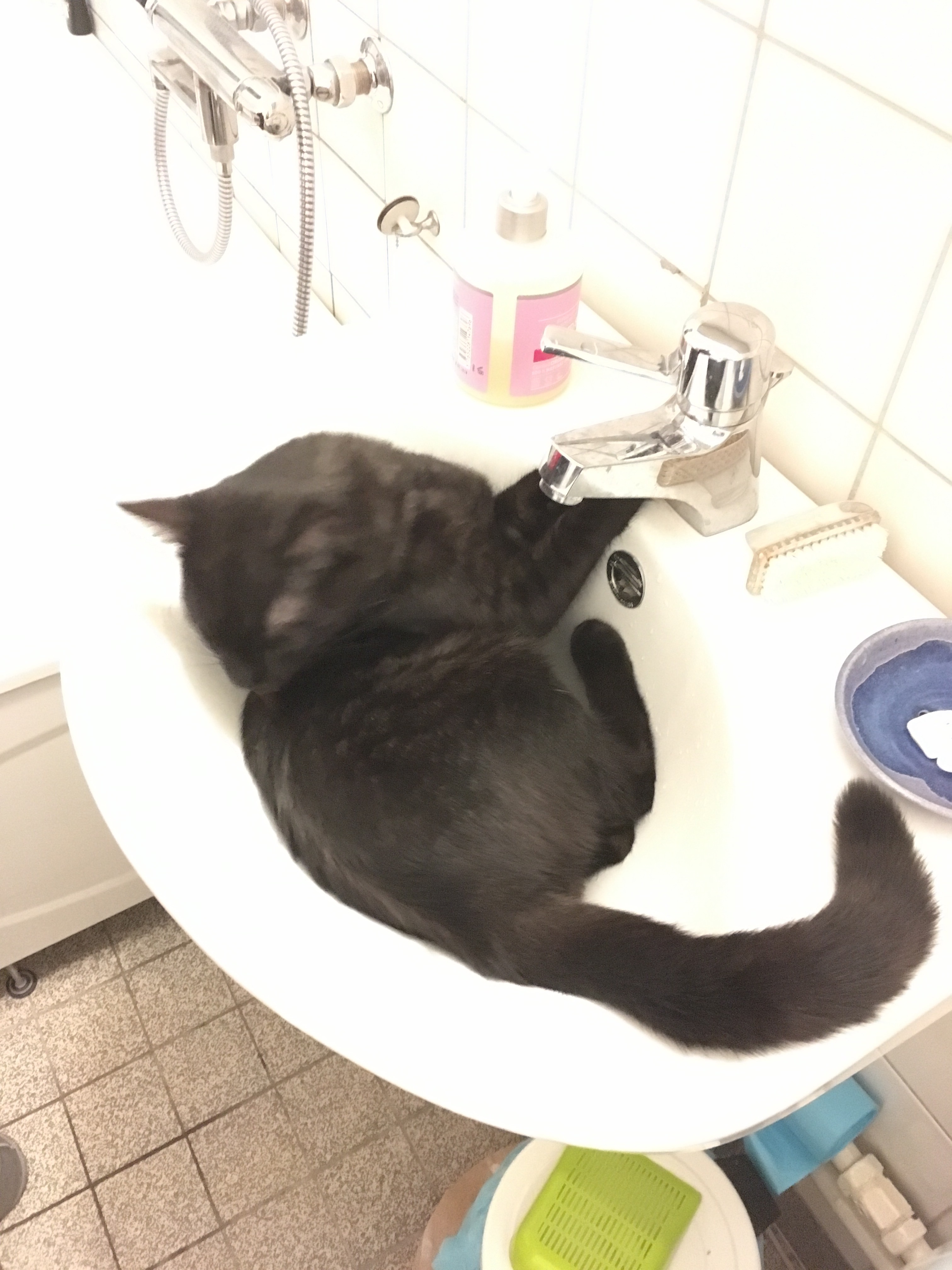 Och tro mig, han var skitig så handfatet kanske är precis rätt plats för en katt..? 😀