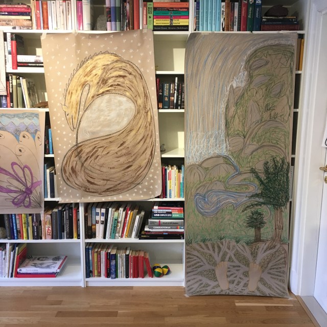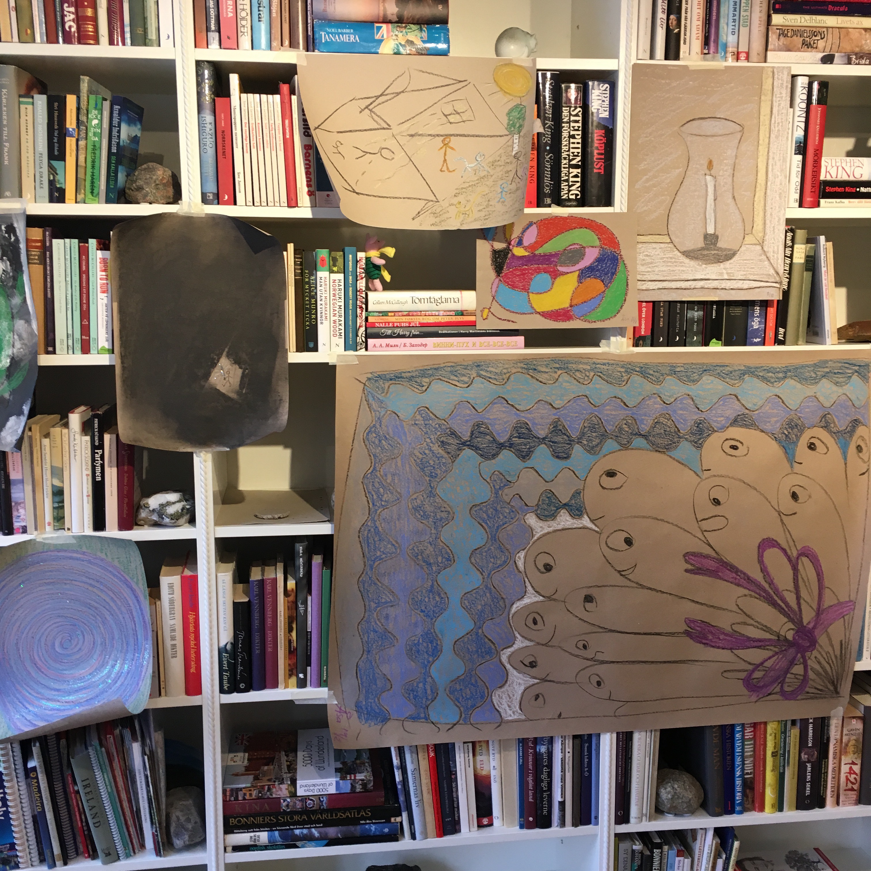 En sorts sammanfattning av ett år som gått och ett urval av det material som har producerats hos terapeuten. Varje bild symboliserar olika känslor, processer eller delar av mig. Detta är vad jag är. Bland annat… 😉