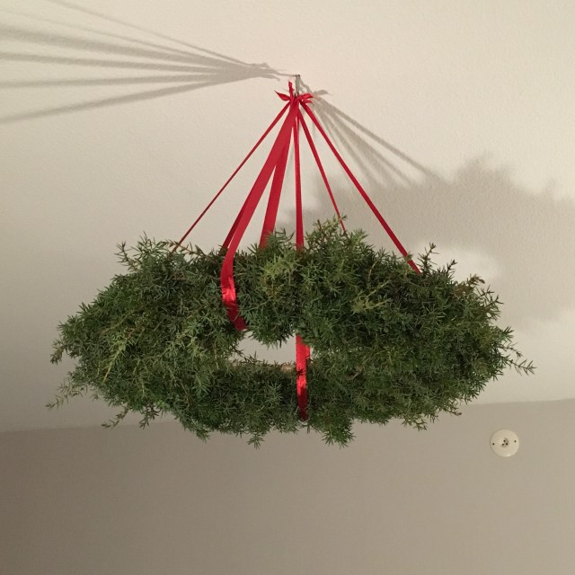 Julstämningen närmar sig. Kransen kommer förmodligen pyntas lite mer, men den är också fin som den är.