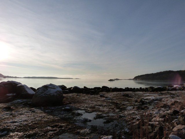 Mitt närmaste hav. Idag njöt jag extra mycket då solen värmde skönt och det tunna istäcket klirrade mot stenarna i strandkanten.