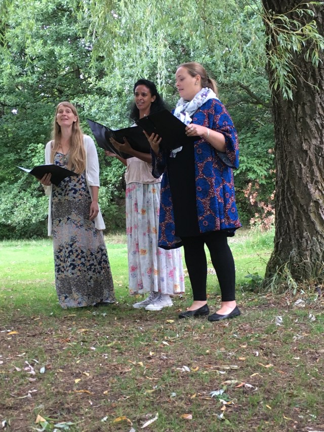 Det är så fint att få njuta av vacker stämsång. Titania heter gruppen som värmde i duggregn och blåst. 🙂