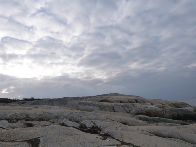 Jag är ute vid havet. Det är kallt, mulet och snöar lite grann. Men inland bryter solen igenom molntäcket, nästan. 🙂