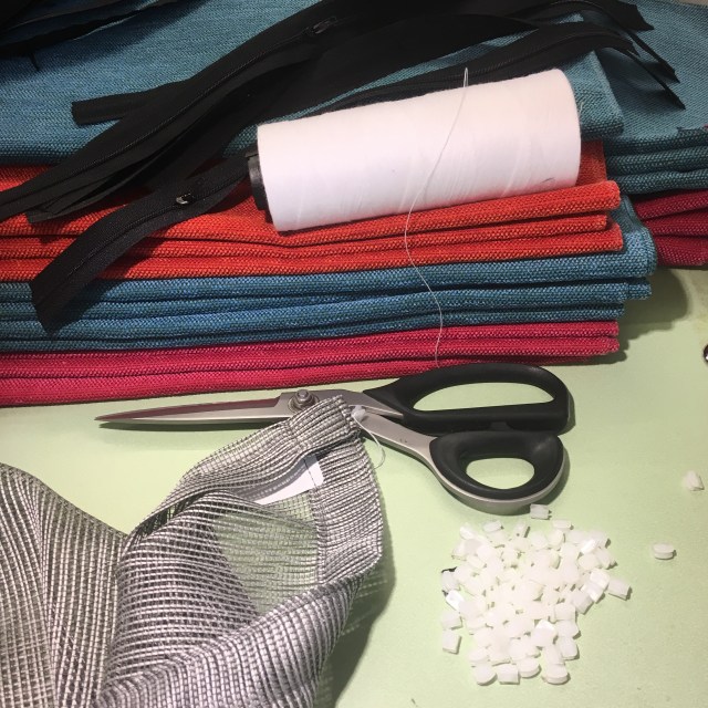 En dag på jobbet kan bestå av att overlocka kanterna på delar till kuddar, göra i ordning dragkedjor till dessa och sy glid på gardiner. Man håller sig lätt sysselsatt. 😄