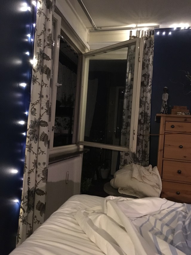 För att uppmuntra till någon rörelse och svalka i nattluften har vi ställt upp både fönster och dörrar. Tack och lov har vi sällan mygg här. 🙂