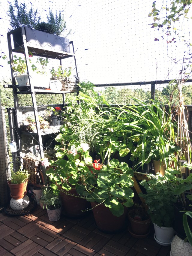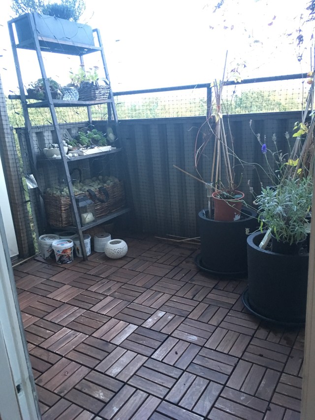 Då var det höst igen och dags att flytta in blommorna från balkongen. Kvar blir bara klematis och taklök, som ändå brukar överleva vintern ute, och några kryddplantor som vi får se om de klarar sig.