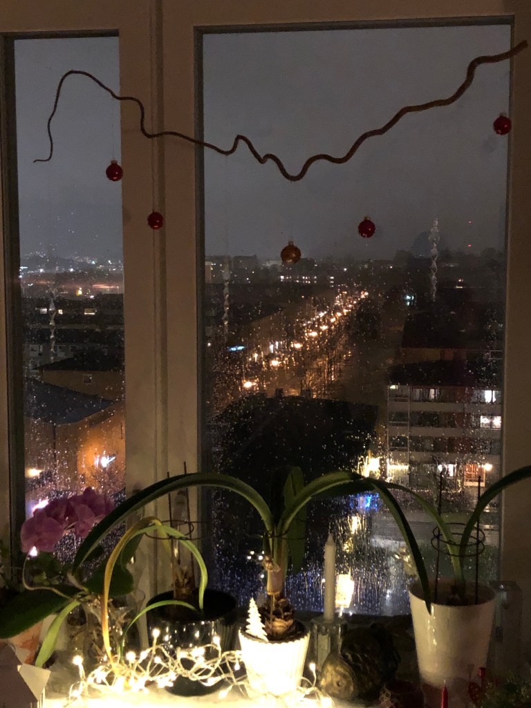 I mitt nya hem har jag utsikt över staden. Det är annorlunda mot förr, där jag hade utsikt mot skog med rådjur och ekorrar, men ändå inte sämre. Bara annorlunda, och ganska mysigt med ljus och människor som breder ut sig nedanför.